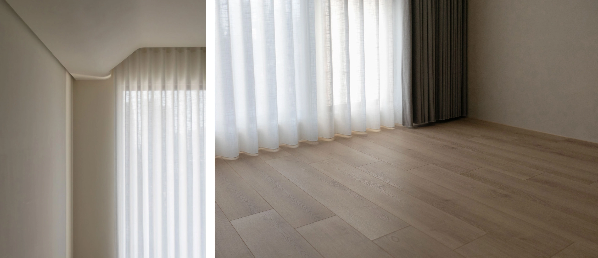 ▎質感基底:選用暖色木地板搭配暖白牆面,營造出優雅且充滿生活氣息的底色。