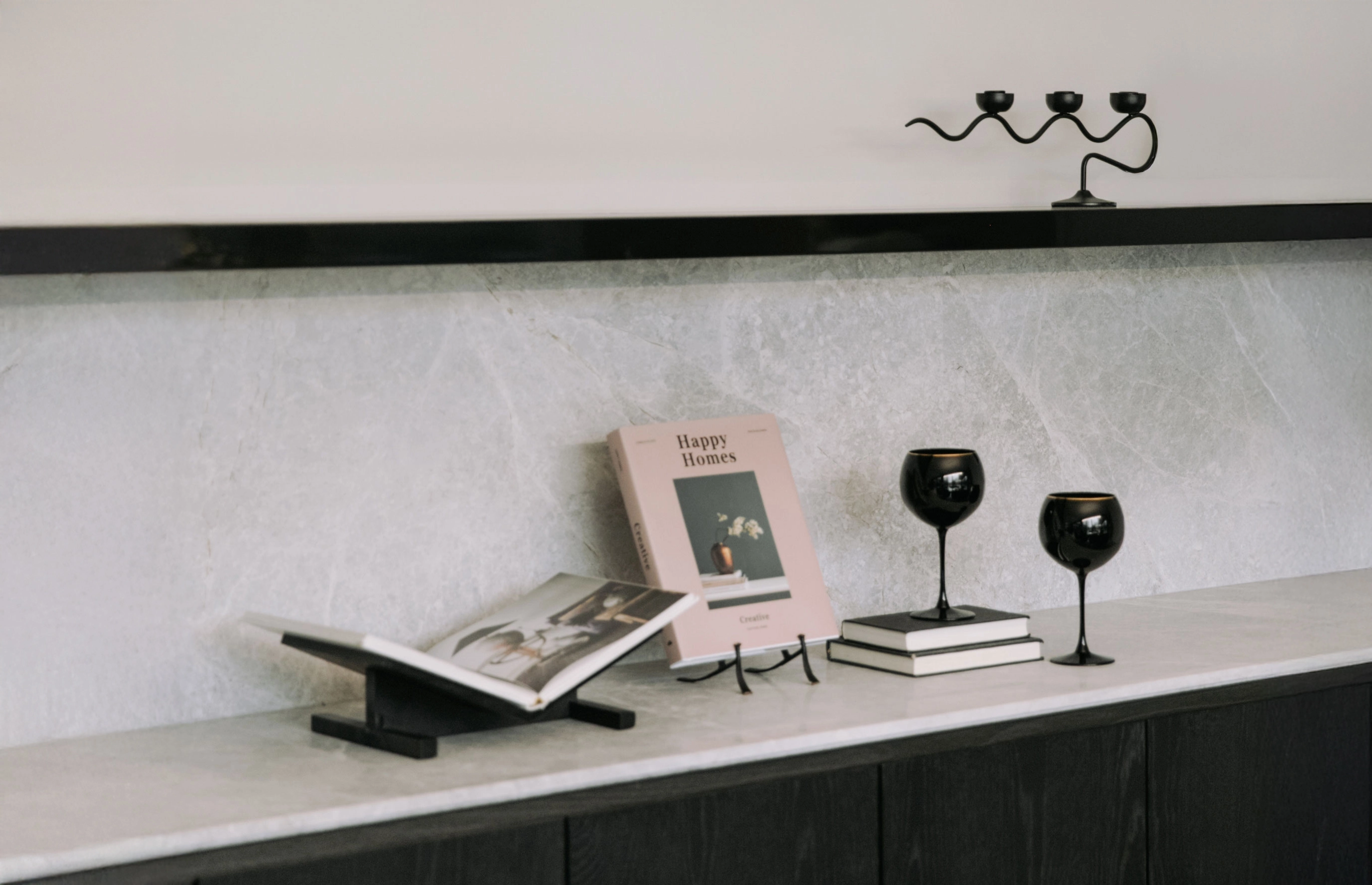 整理重點: 將五鮮六色的雜物收進櫃子,只在檯面留下 1-2 件高品質的軟裝。